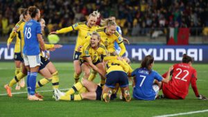 D’abord, dans le Groupe F, la Suède a corrigé (5-0) l’Italie pour valider son billet qualificatif pour le prochain tour du mondial féminin. Dans un duel à sens unique, le calvaire des Italiennes a commencé à la 39ème minute de jeu avec ce but inscrit par Amanda Ilestedt sur une passe décisive de Jonna Anderson.
