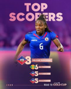D’abord, leader technique de la sélection haïtienne de football, Melchie Daëlle Dumornay, lors de ces deux rencontres avait inscrit 8 buts dont un quintuplé à l’aller et un triplé au retour. Ces réalisations font de la Lyonnaise la 2ème meilleure buteuse de l’équipe féminine haïtienne avec 32 pions à son actif.