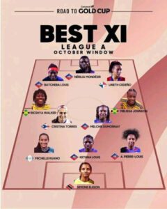 La Concacaf a révélé le mercredi 2 Novembre 2023, les identités des joueuses composant l’équipe type du mois d’Octobre pour les deux dernières journées des éliminatoires de la Gold Cup 2024. Dans ce XI figurent 5 internationales haïtiennes dont Batcheba Louis, Melchie Daëlle Dumornay et Nérilia Mondésir, entre autres.