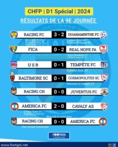 Ainsi, l’AS Capoise en compte 11, Ouanaminthe FC (10), alors que le Racing FC des Gonaïves en totalise 9. Un classement passionnant qui laisse entrevoir que chaque match à l’affiche pour le compte de la dernière journée du Championnat (saison régulière ) sera considé comme une finale.