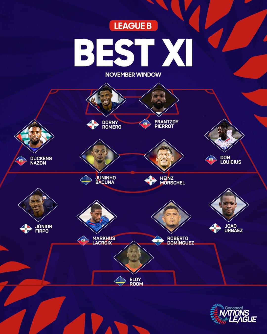 La Concacaf a publié le mardi 26 Novembre 2024, le XI type des joueurs qui ont brillé par leurs performances dans la Ligue B des Nations pour le mois de Novembre. Quatre (4) internationaux haïtiens dont le trio d’attaque Duckens Nazon-Frantzdy Pierrot et Louicius Don Deedson y figurent.